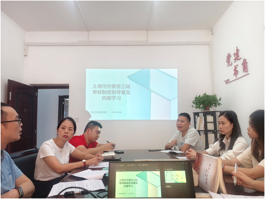 为持续提升土地估价报告质量,筑牢执业风险防线,9月28日,我公司组织全体技术与质量管理人员召开专题学习会,集中学习中国土地估价师与土地登记代理人协会(以下简称“中估协”)印发的《土地估价报告三级审核制度指导意见》(中估协发〔2023〕31号)。本次学习旨在深刻领会文件精神,统一思想认识,并将三级审核的核心要求全面、精准地融入公司质量控制体系,进一步提升执业规范化水平。